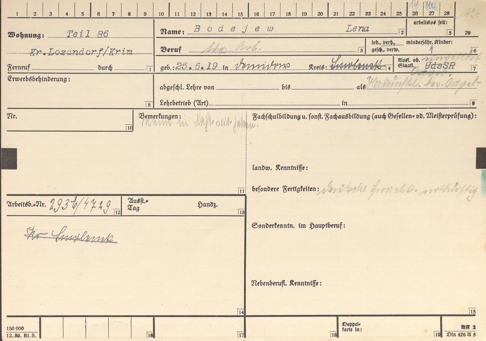 Die Arbeitskarteikarten