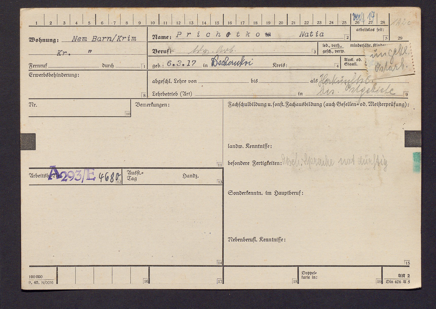 Die Arbeitskarteikarten